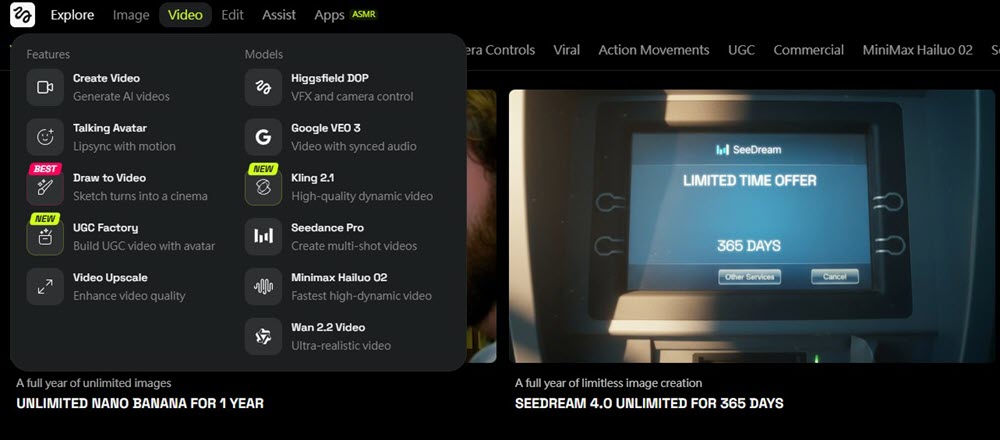 Firstly, log in to your account. Then, you see the dashboard. Basically, this is your home screen. For instance, you see “Create Video.” Also, you see “Text to Video.” And then, you see “Image to Video.” So, these are your tools. Therefore, explore them slowly. Then, understand each button.
